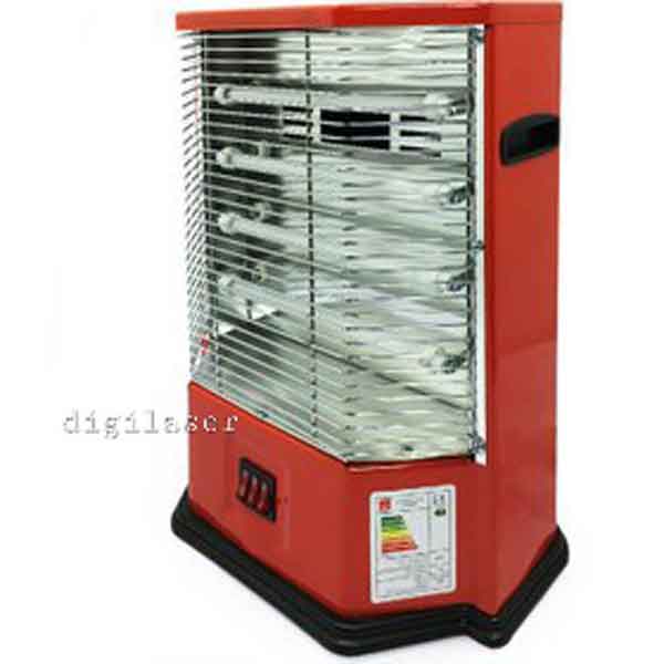این دستگاه دارای 4 المنت شیشه ای است که با داغ و سرخ شدن سیم پیچ ها تولید حرارت می کند و به دلیل نداشتن شعله حتی در مکان هایی با تهویه نامناسب نیز می توان بدون کاهش میزان اکسیژن گرمای مطلوب و مناسب را ایجاد نمود. همچنین مجهز بودن این دستگاه به فن باعث میشود تا گرما به صورت یکنواخت و مطبوعی پخش شود.