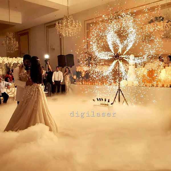 دستگاه فلاور دو طرفه فرفره گردان آتش بازی(فشفشه) آبشار سرد جهت ورود عروس و داماد و همچنین رقص تانگو در مراسم عروسی استفاده می شود. این دستگاه جهت مراسم افتتاحیه و جشنهای مختلف نیز کاربرد فراوانی دارد.